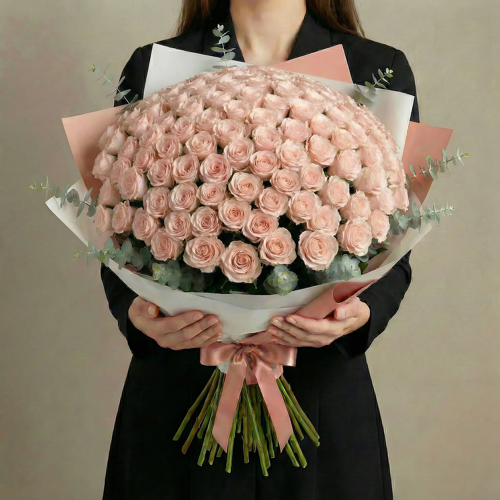 High-End-Strauß mit 100 pfirsichfarbenen Rosen